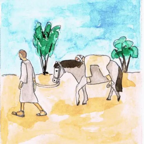 Dann legte der Samariter den schwer verletzten Mann auf das Pferd.