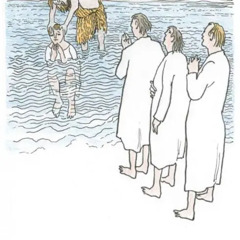 Johannes taufte die Menschen in dem Wasser.