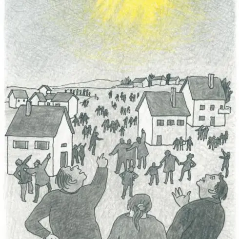 Ein helles Licht kommt zu den Menschen.