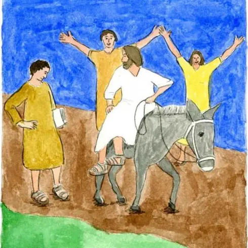 Palmsonntag (nach Lukas) - Jesus reitet auf einem Esel nach Jerusalem.